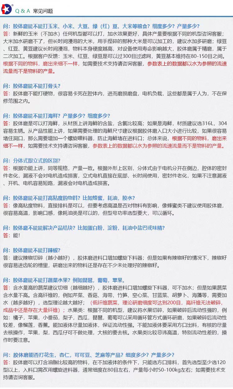 可代替并優(yōu)于石磨,砂磨機、球磨機、乳勻機、乳化機、三輥機、搗碎機等工作。亦可按照客戶對加工物料不同的酸度、堿度、濃稠度等性質(zhì)特殊要求定制生產(chǎn)。