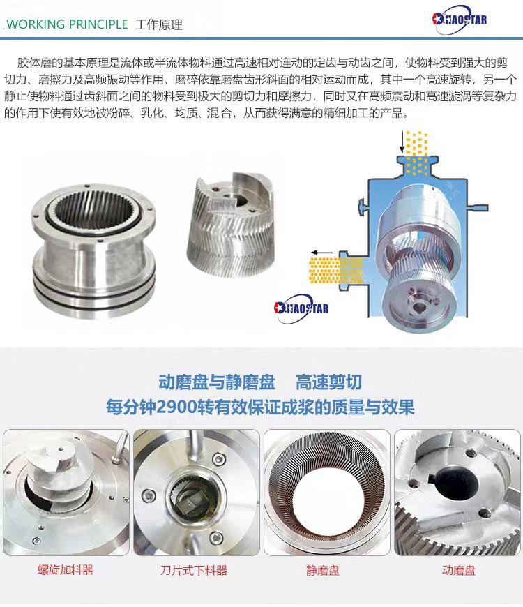 可代替并優(yōu)于石磨,砂磨機、球磨機、乳勻機、乳化機、三輥機、搗碎機等工作。