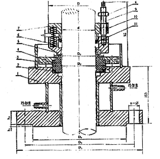 外裝、單端面、小彈簧、平衡型,靜環(huán)采用密封墊密封,使用于一般場合的反應釜攪拌軸出的動密封